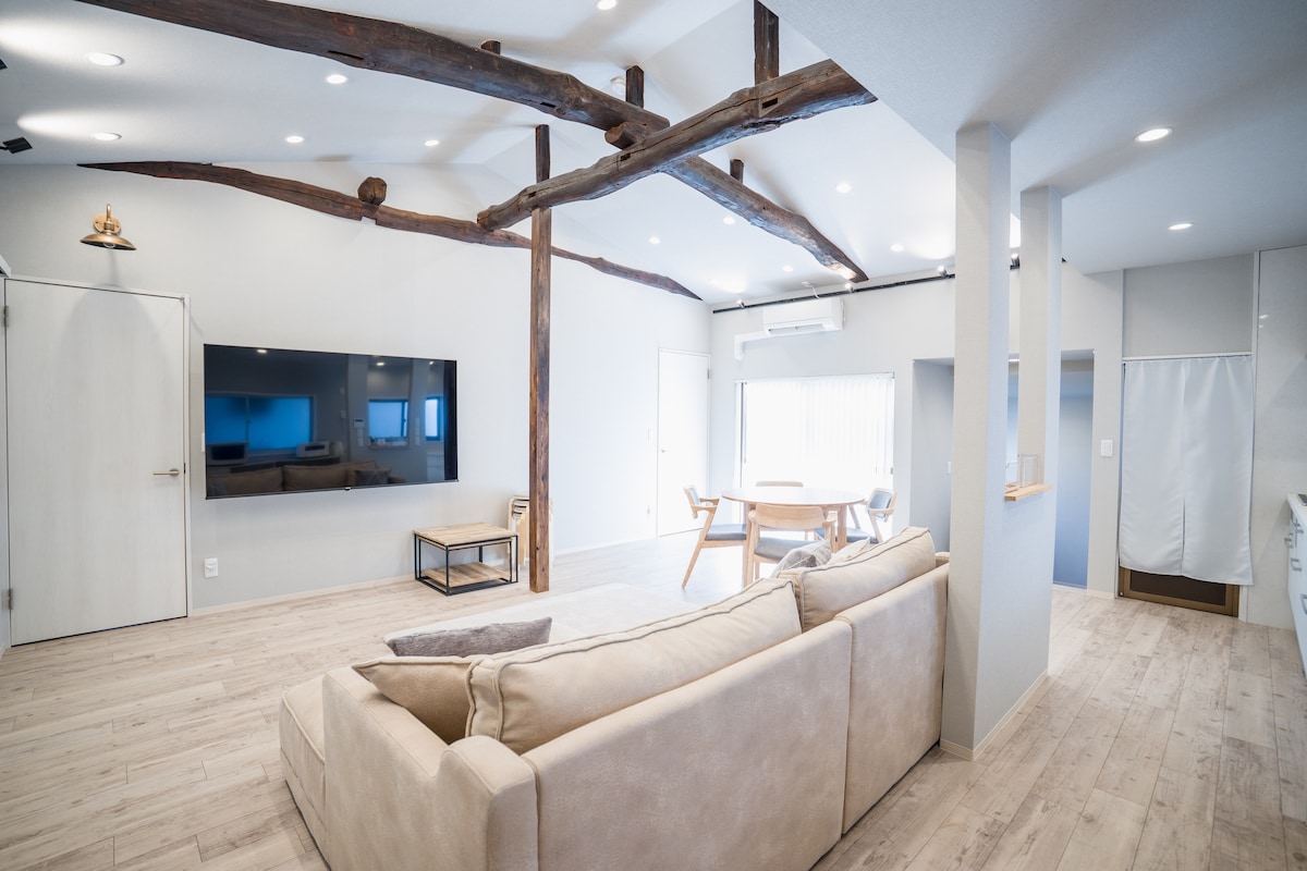NEW OPEN [Villa Reine] A luxurious house for rent. A luxurious space you can't experience in your daily life. Private Hot Spring Included. Perfect for couples or family trips with children. Wake up to natural sunlight and fall asleep as the sun sets — experience peaceful moments in a stylish, café-like space where the soothing sound of flowing hot spring water feels like ASMR. Accommodates up to 4 guests. 1 parking space available.