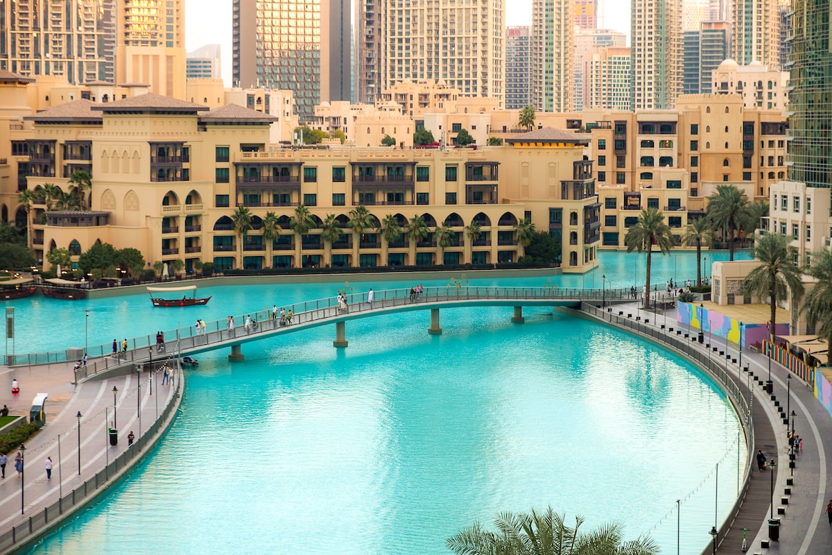 Centro de Dubái, vista al Burj Khalifa y acceso al centro comercial de Dubái