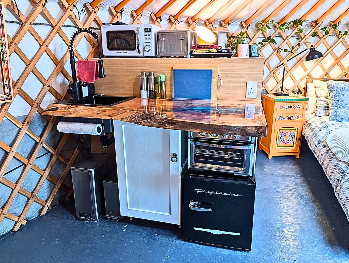 Desconecta, relájate y disfruta de una estadía única en esta yurta artesanal de Mongolia, que combina la artesanía tradicional con una calidez moderna excepcional. No te preocupes por el frío, este es un verdadero refugio invernal. Equipado con una potente estufa de leña, chimenea eléctrica y calentadores adicionales, te mantendrás caliente incluso a -20 °C. Las paredes redondas y la iluminación suave crean un espacio de conexión a tierra para acurrucarse, respirar y desconectarse. El camino de entrada se limpia y mantiene durante todo el año para facilitar el acceso.