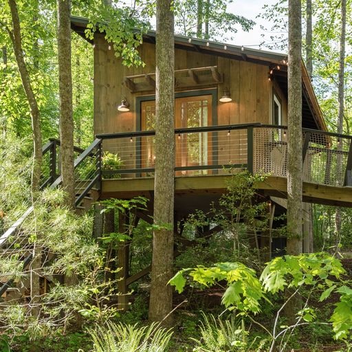 Situado sobre un suelo forestal cubierto de helechos, The Treehouse at Fernwind es el refugio perfecto para tu próxima escapada. Construido pensando en tu comodidad, ¡este lugar lo tiene todo! Con un baño completo con ducha a ras de suelo y suelo de baldosas con calefacción, una pequeña cocina, una sala de estar, un comedor y una cama tamaño queen, ¡disfruta del placer de vivir en un espacio pequeño con estilo! ¡Ubicada a 10 minutos de Hendersonville y a 25 minutos de Asheville, The Treehouse at Fernwind está perfectamente situada para albergar tu próxima aventura!