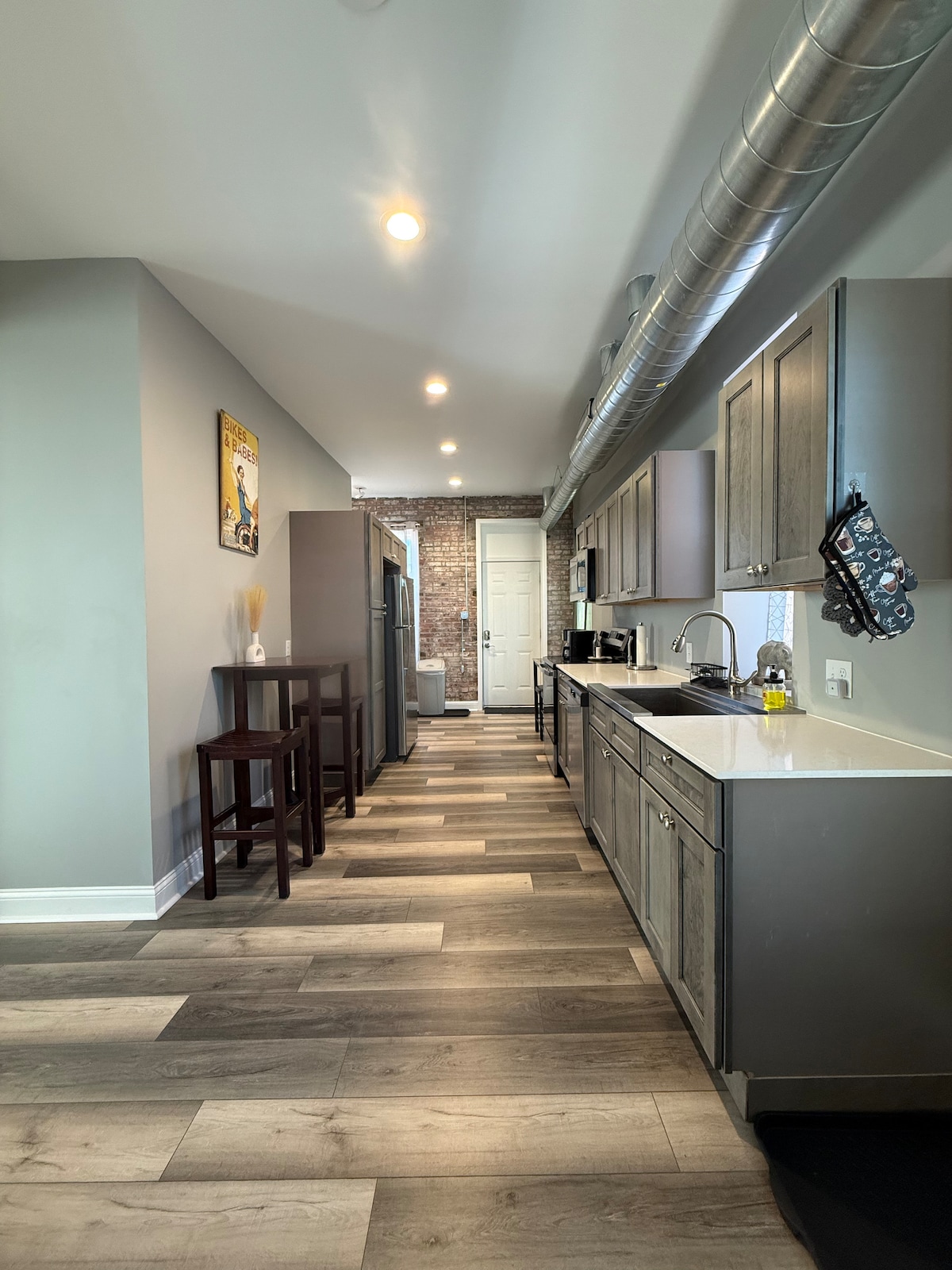 The Meridian is a gorgeous, tastefully designed 1BR/1BA loft with 12’ ceilings + bright 7’ steel-frame windows, and a fully equipped kitchen. Kick off your stay with a fresh-brewed latte and a bite from the mini market downstairs. Spend the afternoon lounging in the sun by the pool, or challenge your friends on the rooftop game terrace. Grill up some dogs at sunset and take a short Uber to the stadium for a Cards game, or class it up with steaks at Carmine’s and a show at the famous Fox Theatre