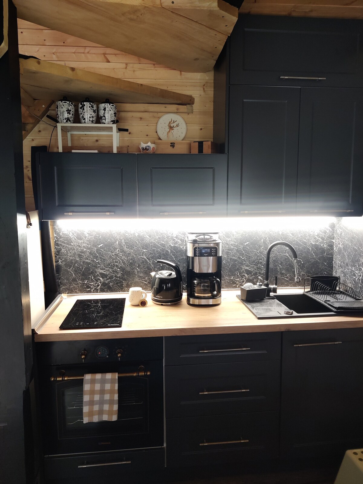 Una escapada serena perfecta para aquellos que buscan descansar y relajarse en la naturaleza. Esta acogedora cabaña cuenta con una cómoda cama, una cocina bien equipada y un espacio encantador ideal para relajarse. Con una cama flexible y ampliable en el área de almacenamiento, también es perfecta para familias con un niño. Situada en el corazón de la naturaleza, la cabaña ofrece un ambiente tranquilo y un fácil acceso al aire libre, por lo que es el lugar perfecto para recargar energías.