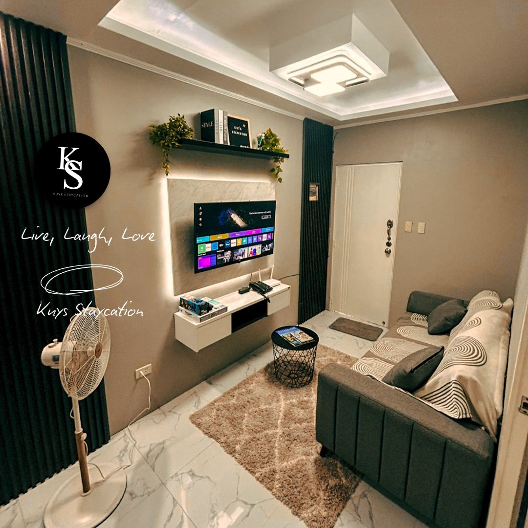 A haven for people who wants a staycation memorable with peaceful ambiance. It has a spacious and convertible bedroom with movable cabinet/division for a (two) 2 queen size bed. A Fully functional kitchen that is well lighted and ventilated where you can cook. With an 8cubic Fridge and a pantry cabinet for food: snacks, can goods, softdrinks available. • It's a fully airconditioned Haven with 2.5 HP Split type AC, plus 2 eletric fans for added air circulation • A clean bathroom with bidet etc