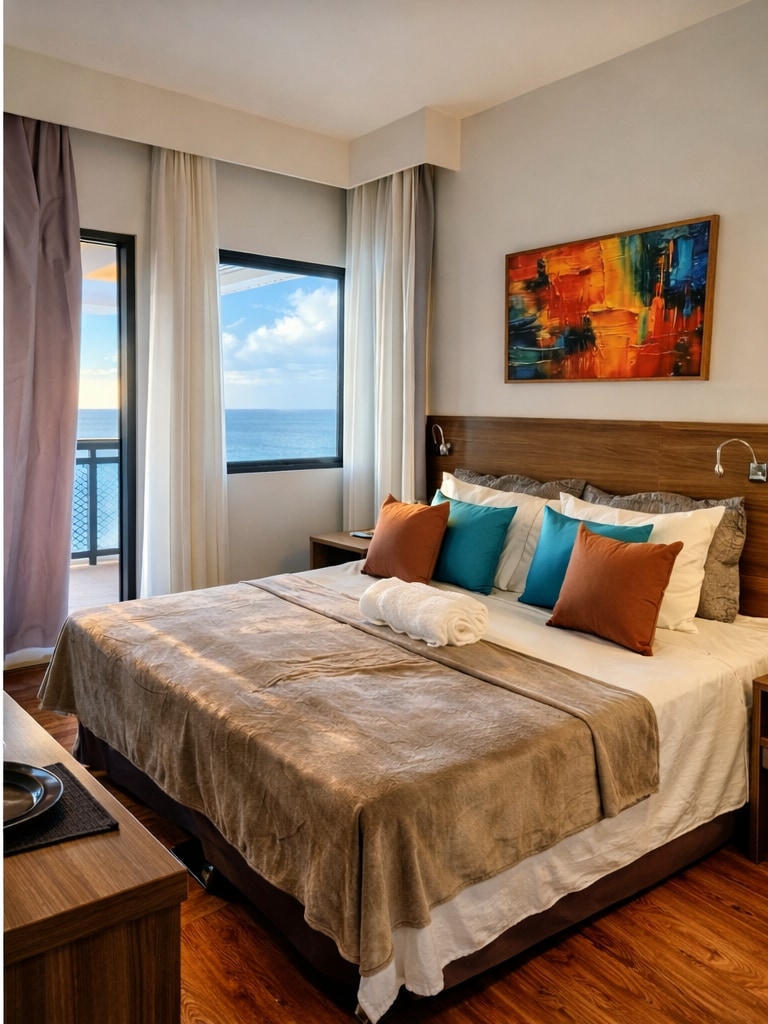 🏖 Piso 605: increíble vista impresionante. Te presentamos el piso 605. Un apartamento acogedor y totalmente amueblado con vistas impresionantes a la famosa Isla del Amor. En el ático tienes acceso a una espectacular piscina con una vista privilegiada. El escenario perfecto para vivir momentos únicos en buena Cia. Ideal para parejas, familias pequeñas y viajeros de negocios que buscan comodidad, privacidad y una excelente relación calidad-precio.