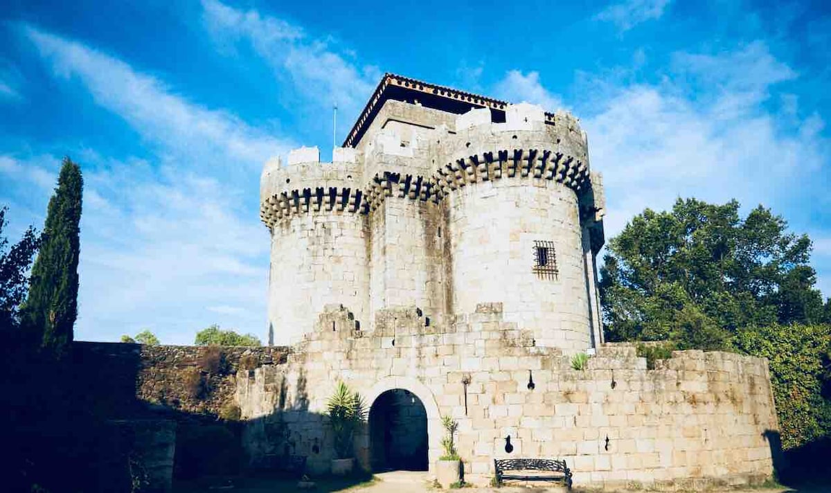 Antigua casa del guarda de la finca, construida con piedra y madera, cuenta con una amplia terraza mirador sobre los jardines, canales y río. La casa se encuentra en una finca en la localidad de El Barco de Avila, a 100 metros del puente románico a orillas del rio Tormes. Tiene una extensión de 40.000 m² cuadrados de los que 20.000 aproximadamente son de jardines y canales.