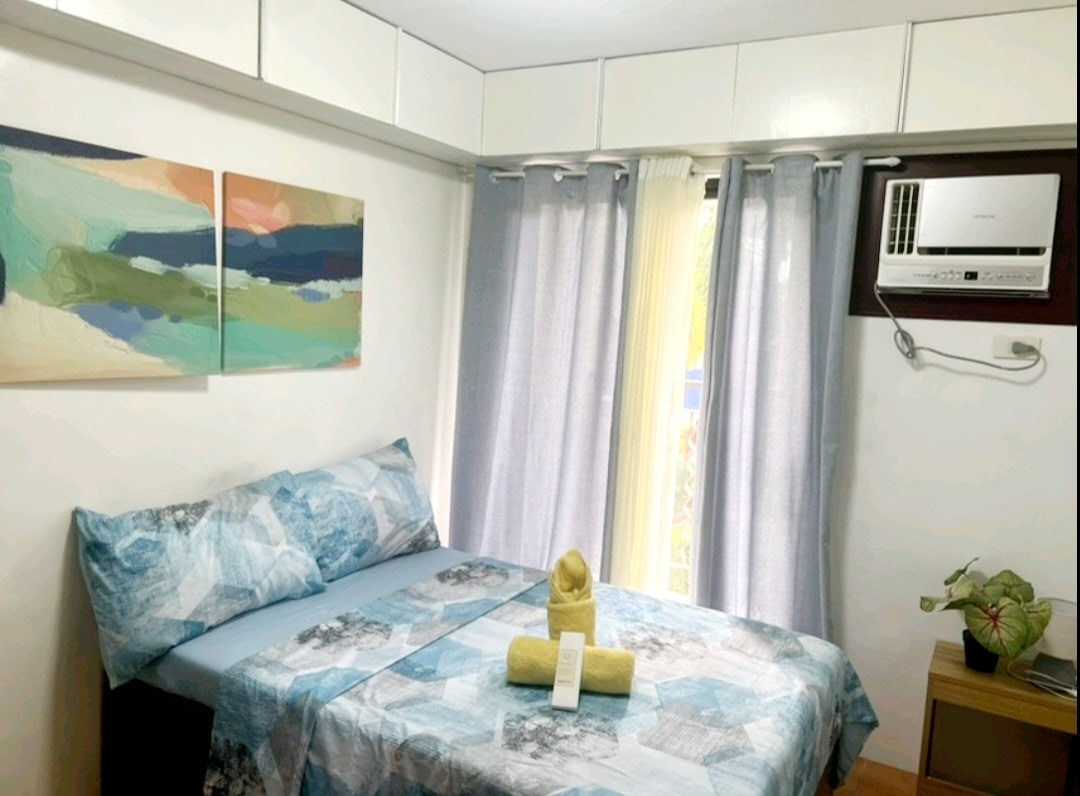 La unidad de apartamento está a poca distancia a pie de restaurantes, tiendas, un hospital y el centro comercial Ayala. El entorno es seguro. Hay seguridad las 24 horas y personal asignado en el vestíbulo. En el edificio hay ascensor. El interior de la unidad de estudio es acogedor y cómodo. Viene con 2 camas de matrimonio. Puede alojar hasta 3 huéspedes. Se proporciona conexión wifi a internet, ideal para llamadas por internet y navegar por la web.