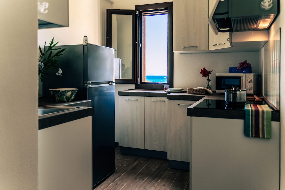 Nuevo apartamento de 30 metros cuadrados, con una gran terraza, equipado con mesa y sillas para tu relajación al aire libre. ¡Aquí puedes perderte en una impresionante vista al mar! Situado en una colina rodeada de naturaleza, el apartamento está amueblado en un estilo funcional y mediterráneo; consta de una suite de dormitorio doble, una cocina completa, baño y terraza. Desde aquí puedes disfrutar de la paz y tranquilidad del lugar y llegar a las playas más hermosas de la costa en unos diez minutos en coche.
