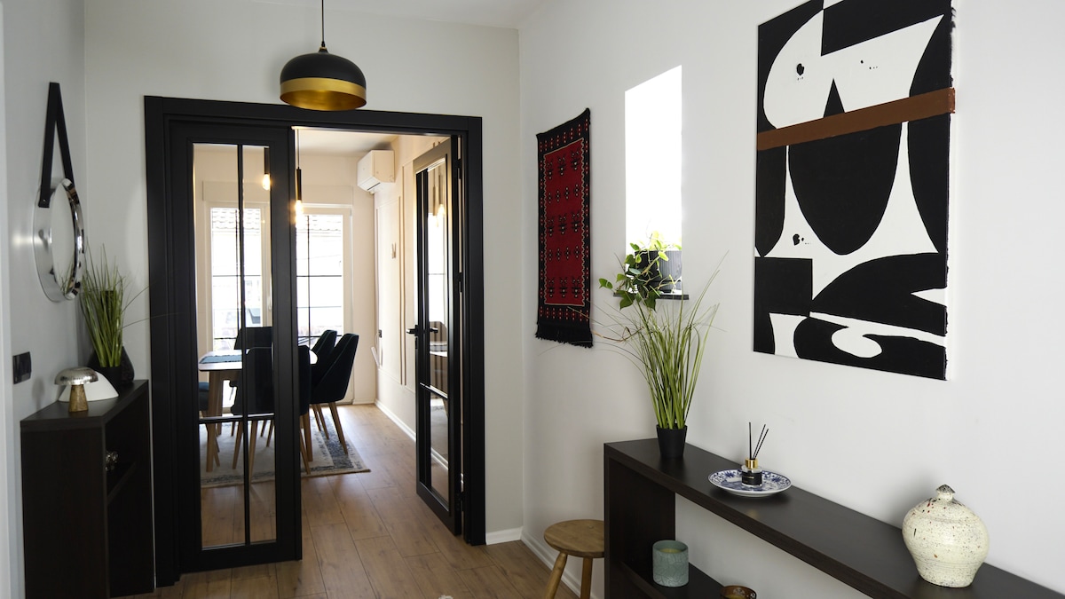 Echa un vistazo a nuestro apartamento en el centro de Prishtina. En el corazón de la ciudad con todo lo que necesitas, desde cafeterías hasta restaurantes, librerías, puedes visitarlas sin necesidad de transporte en absoluto. Nuestra tarea principal fue la organización competente del área de trabajo de ​​la cocina y la posibilidad de transformar la cocina en un salón. El estado de ánimo y el espíritu de la habitación se transmiten a través de tonos profundos y complejos.