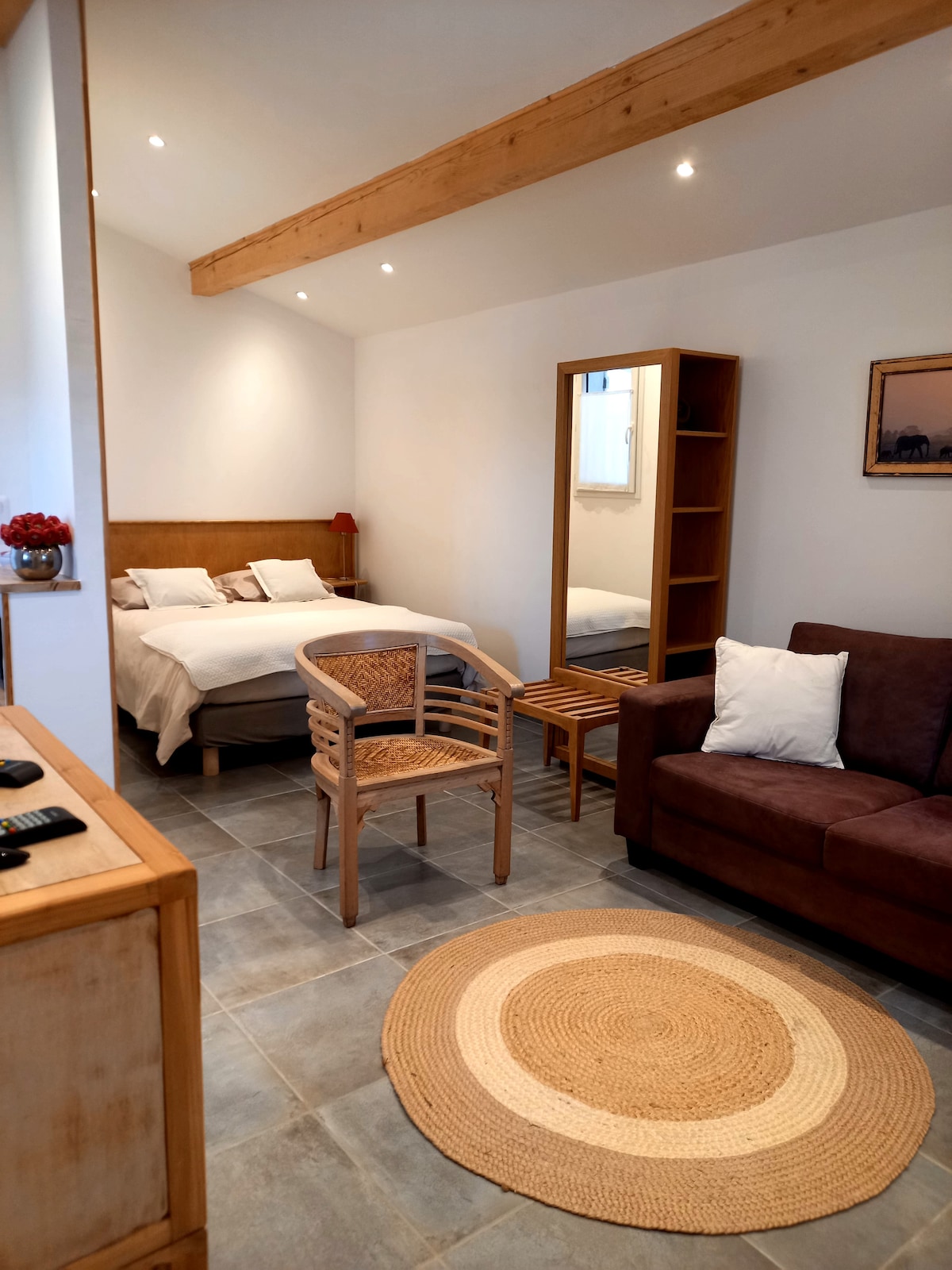 Casa independiente de 25 m2, renovada en 2019, con aire acondicionado y bien decorada. Consta de una zona de dormitorio (con una cama de 2 plazas), una zona de estar (con sofá, mesa, sillas, sillón, televisión), una cocina amueblada y una sala de ducha/lavabo/WC. La casita/estudio da a una terraza y un jardín, se encuentra en una zona residencial de Cagnes sur mer a 2 pasos del centro de la ciudad, cerca del transporte público, a 800 m de las playas y a 4 km del aeropuerto.