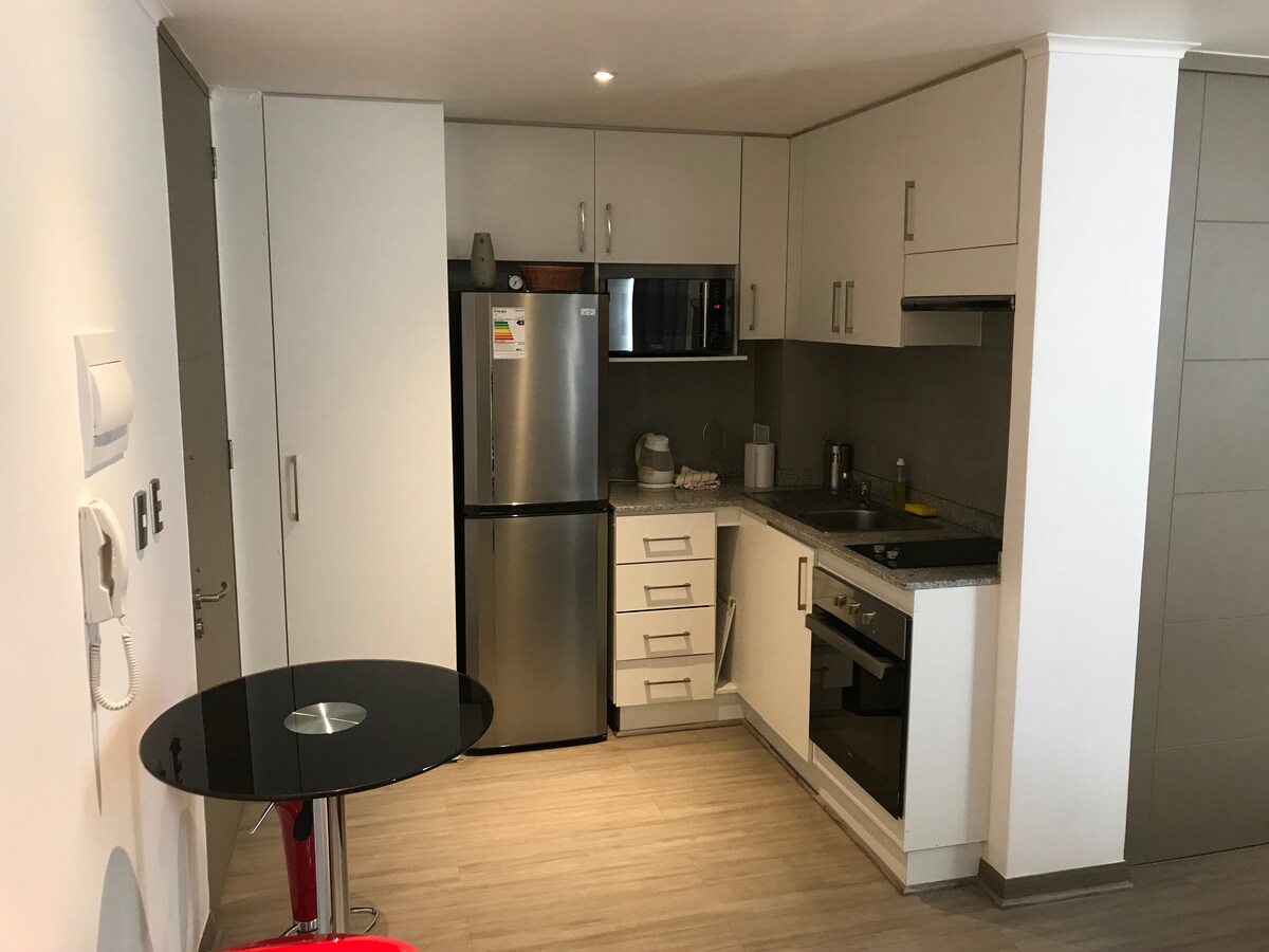 Disfruta de la sencillez de este alojamiento tranquilo y céntrico en la ciudad de Calama. Frente a él, un gran centro comercial con supermercados, farmacias, restaurantes, y otros. Renovado para entregar la comodidad y elementos que un huésped necesita. Estacionamiento privado incluído, spa, piscina, quincho, gimnasio y lavandería son los servicios que ofrece el edificio con reserva previa (cerrado los lunes por mantención en instalaciones, se debe pagar por el uso, no incluye detergente)
