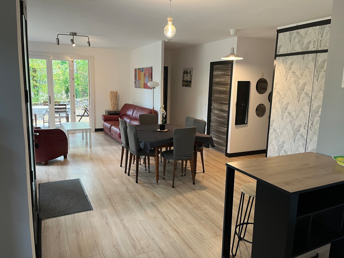 Apartamento amueblado de 50 m2 en la planta baja de una casa a 5 minutos de Cahors. Todo el comercio en las inmediaciones El apartamento cuenta con aire acondicionado, sala de estar-cocina, dos sofás , un dormitorio y un baño con ducha. Cocina equipada con lavavajillas, vitrocerámica, horno, microondas, nevera-congelador. Estacionamiento privado, jardín Gran lago a 10 minutos, natación, pedaló, pesca, bar restaurante Ubicación ideal para visitar el valle del Lot y de la Dordoña