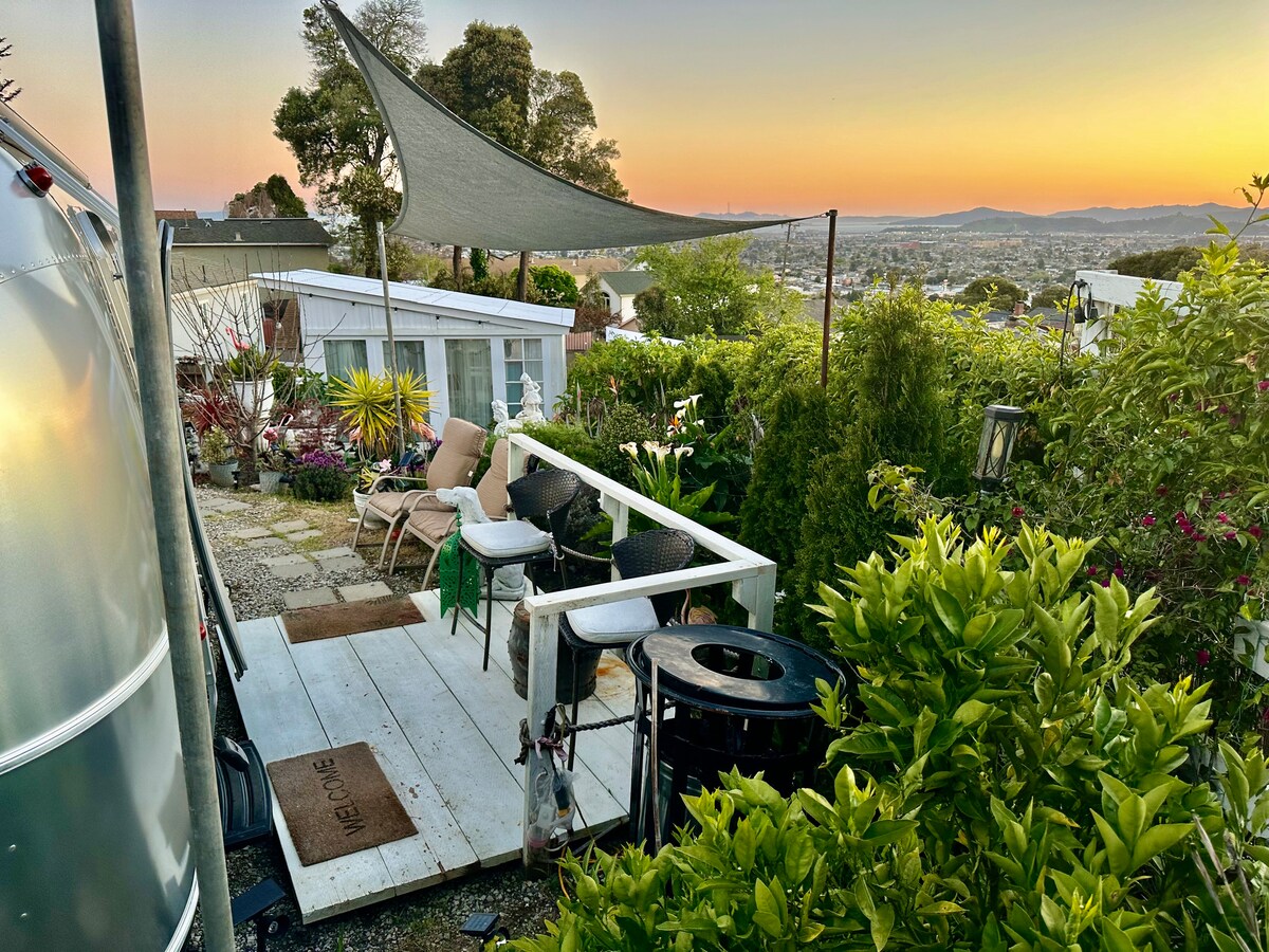 Una experiencia única en Airbnb. Relájate en un icónico remolque Airstream de 22 pies con una cocina totalmente equipada, comedor, baño separado, ducha separada, zona de dormitorio con cama tamaño queen. TV inteligente de 25 pulgadas, así como reproductor de DVD y sistema de sonido de radio. Ofrecemos cubiertos, platos, utensilios de cocina, ollas, sartenes, Kerig de una sola porción, tostadora... casi todo lo necesario para que te sientas como en casa lejos de casa. Relájate y duerme en uno de los colchones más cómodos. Despiértate con vistas panorámicas a la bahía y al horizonte de la ciudad.