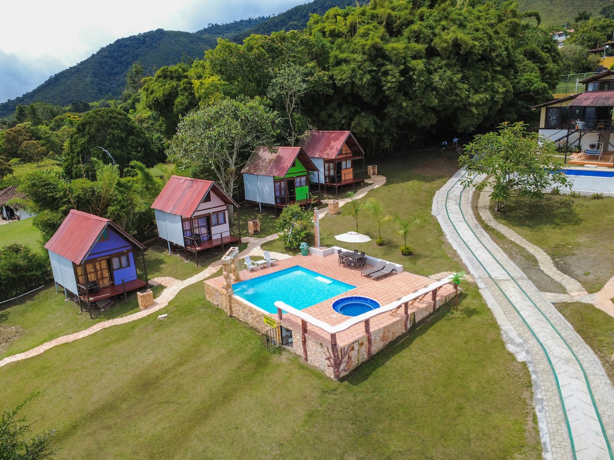 La Giralda ofrece tranquilidad, descanso real y naturaleza a solo 2 min del pueblo y 8 min del Lago Calima. Ideal para quienes buscan desconectar del ruido y disfrutar de privacidad, aire limpio y zonas verdes. Cuenta con piscina privada, turco, parque infantil, billar, ping-pong, juegos y zona de asados. Perfecta para familias y grupos que valoran la calma. Incluye 1 hora de jacuzzi por noche. Acceso en carro por camino rural de aproximadamente 400 m. Parte del encanto campestre del lugar