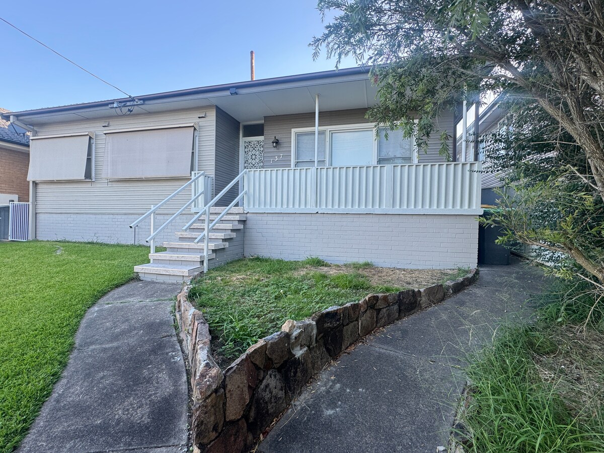 Esta casa de huéspedes de 2 dormitorios, espaciosa y llena de luz, tiene una ubicación céntrica cerca del hospital John Hunter, tiendas, estadio deportivo, centro de entretenimiento y universidad. A cinco minutos a pie de las tiendas del pueblo de New Lambton con supermercado IGA, pub, excelentes cafeterías y restaurantes. A diez minutos a pie del recinto deportivo McDonald Jones y del estadio de hockey. A diez minutos en coche de Newcastle y de las playas. Este local tiene una amplia cocina y salón con techos altos, patio y aparcamiento fuera de la calle.