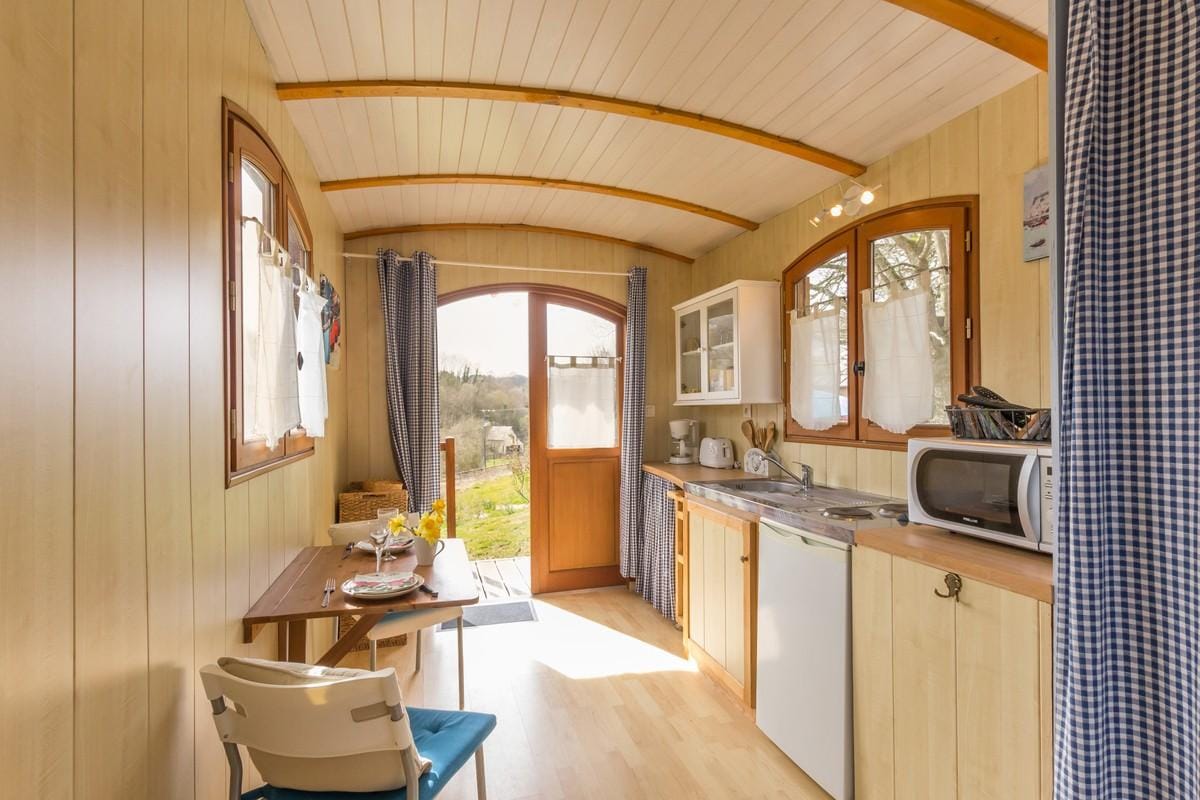 Regálese un paréntesis bucólico en nuestras caravanas únicas e insólitas. Entre el Orne para recorrer en kayak, la vía verde para los amantes del ciclismo y las sublimes caminatas de Suisse normande... Cada uno tiene su pretexto para venir a vivir un momento que le pertenece en nuestras insólitas caravanas. Cocina, baño y ducha privada en la terraza cubierta.