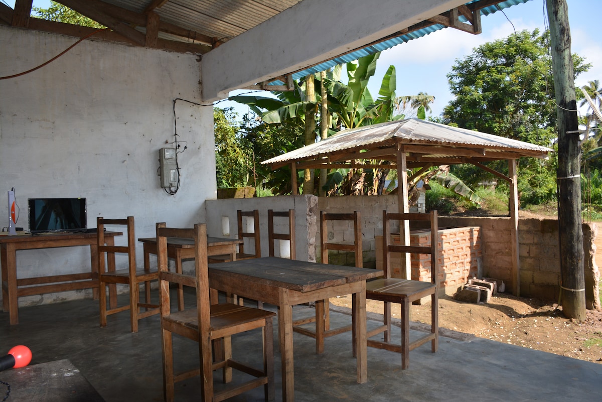 /!\ C'est une auberge possédant 8 chambres doubles à réserver individuellement L'auberge-bar a aussi un service de ventes de boissons et de pâtisseries. Un autre bar se trouve en face. L'endroit y est donc assez animé. Une boutique se trouve juste à proximité en cas de besoin. L'auberge se trouve en plein coeur du village et le centre ville est à moins de 20 minutes en moto.