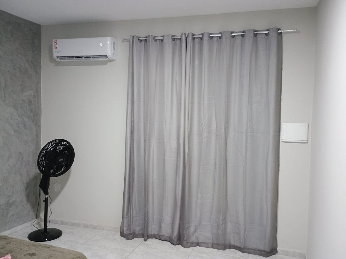 Un espacio tranquilo, cerca de la avenida principal. Equipado con refrigerador, microondas, wifi, vajilla, armario, mesa, cama doble, redes, ventilador. A 12 minutos de la playa, con varios restaurantes junto al mar, con música en vivo y cocina peculiar.