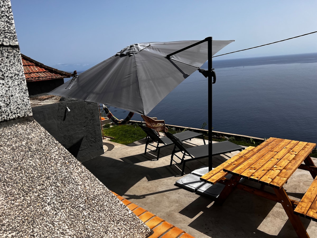 Casa solarenga, vista mar, situada no sul (centro da ilha). Acesso rápido para qualquer parte da ilha. Próxima do mar e das caminhadas pela natureza. Espaço amplo para 2 pessoas com possibilidade de mais 1. Todas as comodidades para ótimo descanso, inclui Ar Condicionado, Biblioteca "Take a book, return a book" Estacionamento gratuito em frente ao AL. Beneficie também da espreguiçadeira, chuveiro, churrasco ou mesa exterior. Poderá também lavar o seu material de caminhada ou mesmo o veículo.