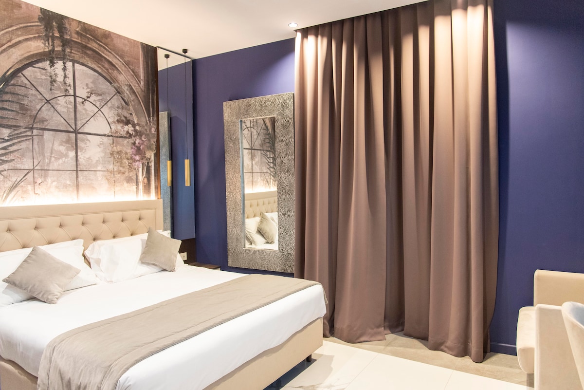 Habitación doble en elegante boutique pocas habitaciones en el centro histórico de Roma, entre el Coliseo y Termini cerca de la Fontana di Trevi y Plaza de España. Roman Holidays se encuentra en el barrio de Monti, en el edificio de 1884, a pocos minutos de la estación de Termini y de las principales atracciones turísticas, fácilmente accesible a pie. Un espacio privado con algunas habitaciones con una decoración elegante y moderna