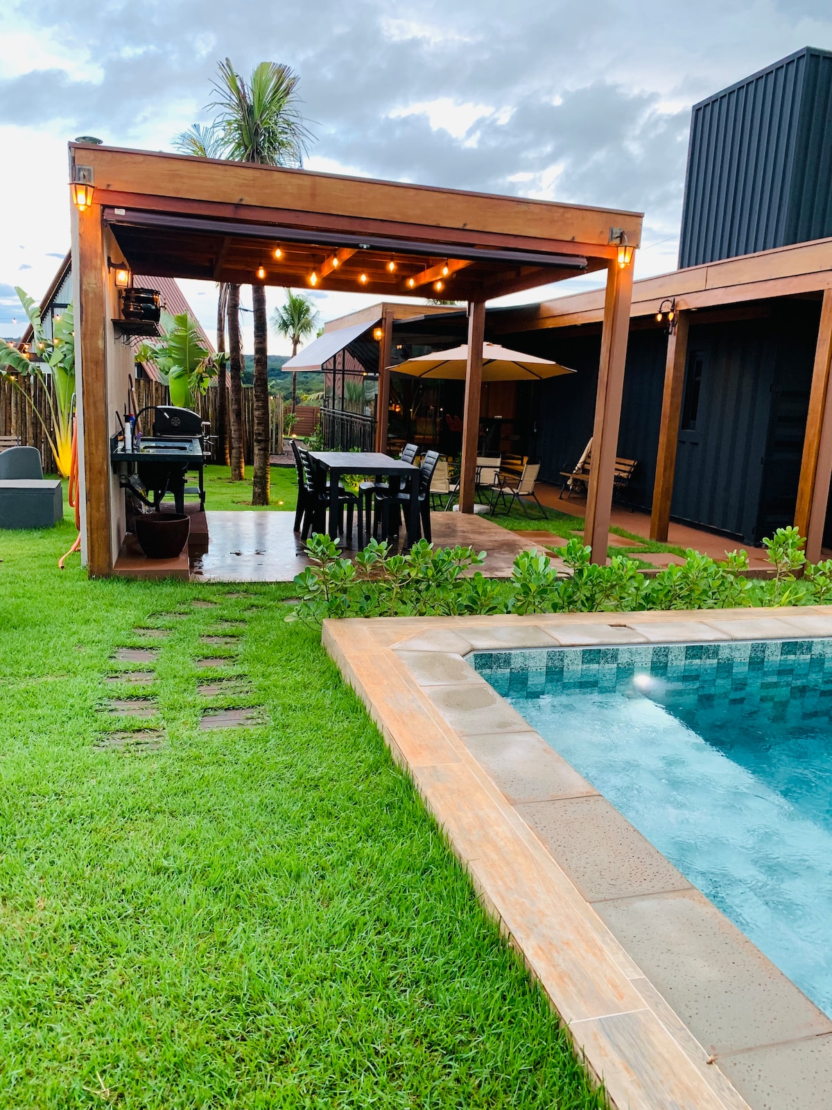 Nossa casa container foi criada para quem busca descanso em meio a natureza, conforto e momentos de paz. Temos uma cozinha completa para você preparar suas refeições juntamente com uma sala conjugada onde possui Tv com internet e Netflix. 01 quarto com cama super king e um banheiro confortável com produtos de banho como shampoo, condicionador e sabonete, além de toalhas. Na área externa contamos com um gourmet onde tem fogão a lenha e churrasqueira, piscina privativa e área com lareira.