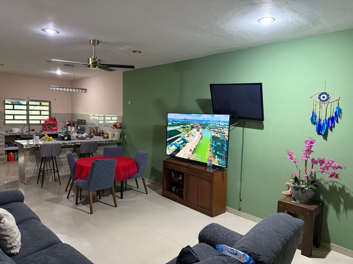 Excelente ubicación , casa con 2 habitaciones baño completo , cama king size , sala , comedor , internet , cable, TV smartv 75 “ , refrigerador, estufa y microondas, cafetera , estacionamiento , cámara de seguridad