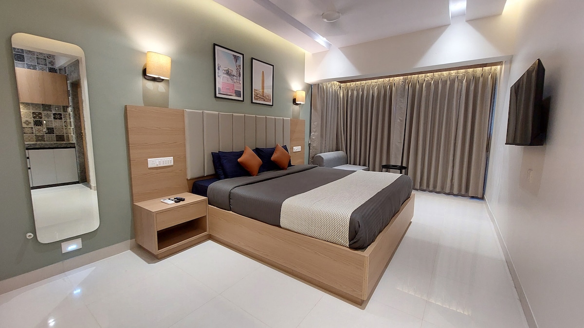 At Ananta Collective, Experience North Goa at its finest in this beautifully designed 1BHK luxury apartment nestled in the serene neighborhood of Nerul, just minutes away from Candolim, Coco, and SinQ Beach. Step into a world of modern interiors, elegant finishes, and thoughtful details that blend comfort with style. The apartment features a spacious living area, a fully equipped kitchen, and a cozy bedroom with premium bedding — perfect for couples or small families seeking a relaxing getaway.