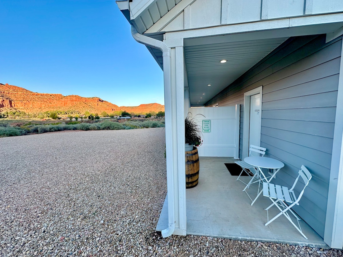 Este es un pequeño y hermoso apartamento con patio privado y estacionamiento. Se encuentra a pocas cuadras de la autopista para acceder fácilmente a muchos parques y atracciones locales sin dejar de ser tranquilo y hogareño. El patio privado está preparado para disfrutar de la luz cambiante en las hermosas montañas de la zona y las suaves noches iluminadas por las estrellas del alto desierto. Incluye una cocina completa, bañera de hidromasaje y lavadora/ secadora. Cómodo y elegante sin dejar de ser acogedor.
