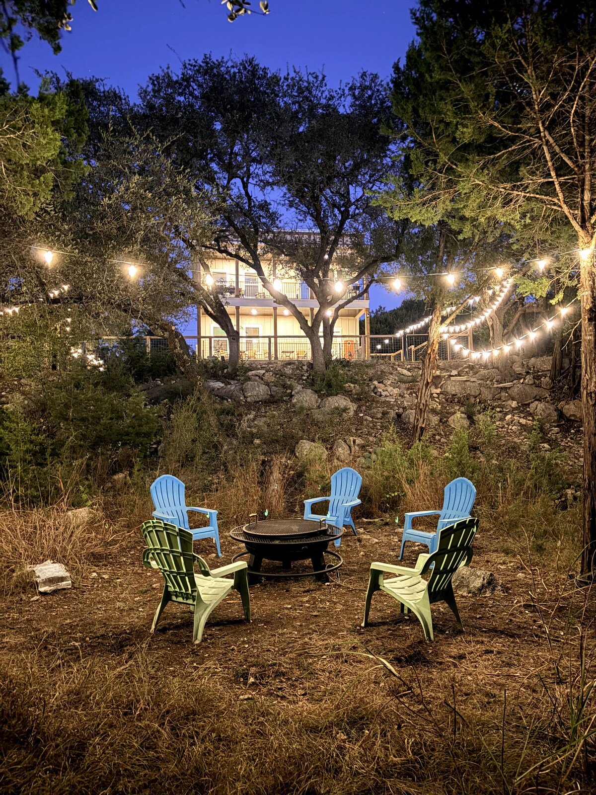 ¡UNA DE LAS PROPIEDADES MÁS ÚNICAS DEL CENTRO DE TEXAS! Ubicado en privado en un acantilado con vistas al lago Canyon, estarás rodeado de vida silvestre, vistas panorámicas y tu propia gruta privada con manantial. Disfruta del café de la mañana en el porche con mosquitero, camina hasta el lago por el sendero natural utilizado por ciervos y zorros, y contempla una espectacular puesta de sol en Texas con una vista que abarca desde la presa hasta los picos de Twin Sister. Estamos ubicados a menos de 4 millas del Horseshoe y del Whitewater Amphitheater.