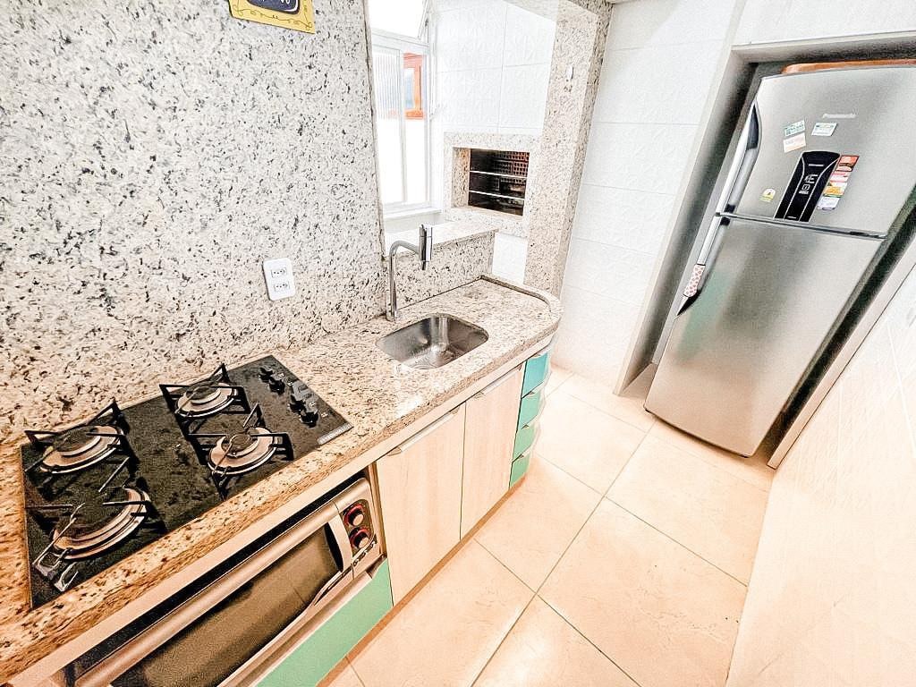 Apto à três quadras do Mar, com pátio e estacionamento fechado( 1 vaga), alarme, TV 32" com sinal digital (canais abertos), churrasqueira, lavanderia, cozinha completa( fogão, geladeira, liquidificador, micro-ondas, Airfryer, louças, talheres, panelas, potes), 1 quarto, 2 sofá cama, roupa de cama e travesseiros, 1 banheiro, ventilador de mesa, ferro de passar roupa, rede de balanço, guarda-sol e 2 cadeiras de praia.