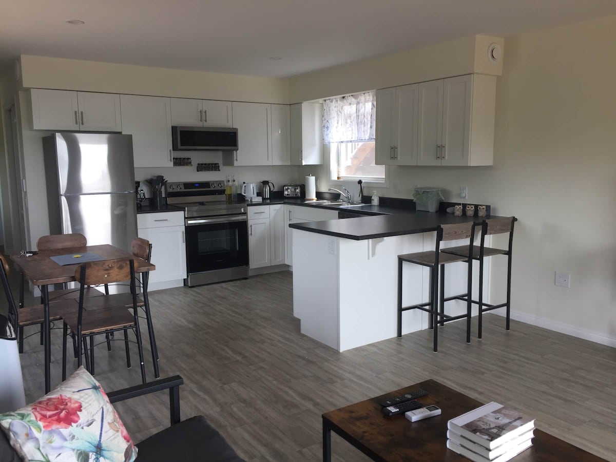 Bienvenido a "The Wild Chicken Holiday Suite" Estamos situados a 1 km del Parque Nacional y a 5 minutos del centro de Cheticamp. La suite tiene una cafetería de ensueño con excelentes opciones de café y té, así como otras bebidas calientes también. ¡También estarás encantado con magdalenas frescas de esa mañana de temporada que preparo y por las que formo la fruta! ¡También tienes tu propia terraza privada y entrada con una mesa y sombrilla! Como huésped, tienes acceso completo a la chimenea con leña incluida. SIN MICROONDAS.
