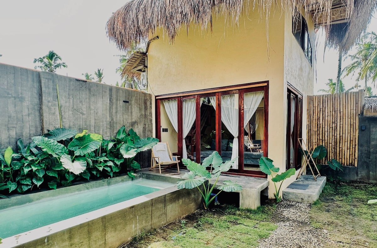 Welcome to this stunning private villa located near one of the most beautiful beaches of Siargao. Enjoy the scenic private outdoor pool views & stylishly furnished spacious indoor with a touch of local art. All just a few steps away from the beach. The unique mixture of modern design & tropical nature provides comfort and privacy whilst offering unique experience of luxurious getaway in a jungle paradise. You are only: 80 m to an empty sandy beach 8 mins to Cloud 9 11 mins to General Luna