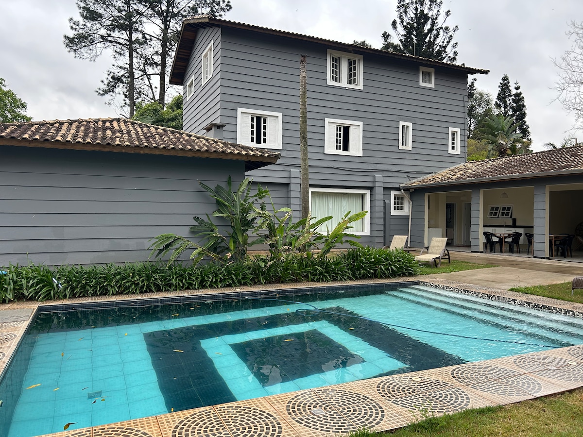 A 23 KM de SP, Casa Relax es ideal para reuniones familiares y de amigos. Ideal para la planificación estratégica de su equipo. Naturaleza, barbacoa y piscina climatizada, diversión garantizada incluso en días fríos y nublados. Late Checkout 18h. Ropa de cama/baño, cuna, baño con amenities, cocina equipada - lavavajillas. Aceptamos mascotas. Condominio de alto estándar, 5 suites, jardín, chimenea, espacio de trabajo, amplia sala de TV e internet rápido, en una casa de 400 m. Tenemos energía solar.