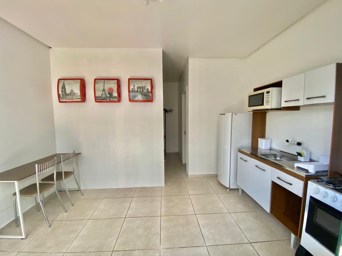 ¡Hermosa kitnet, súper cómoda! En ❤️ el centro de la ciudad. Edificio con puerta electrónica, vigilancia, ascensor, garaje no cubierto. Aire acondicionado, internet, Smart TV, cocina con microondas, airfryer, horno, purificador de agua, lavadora. ¡¡¡Cerca del Hospital da Cidade y del 38 Batallón de la BM, farmacias, supermercados, panadería, gasolinera, tienda de neumáticos y mucho más!!! ¡Ambiente extremadamente limpio, tranquilo y seguro! ¡Haga su reserva ahora, será un placer recibirlo!