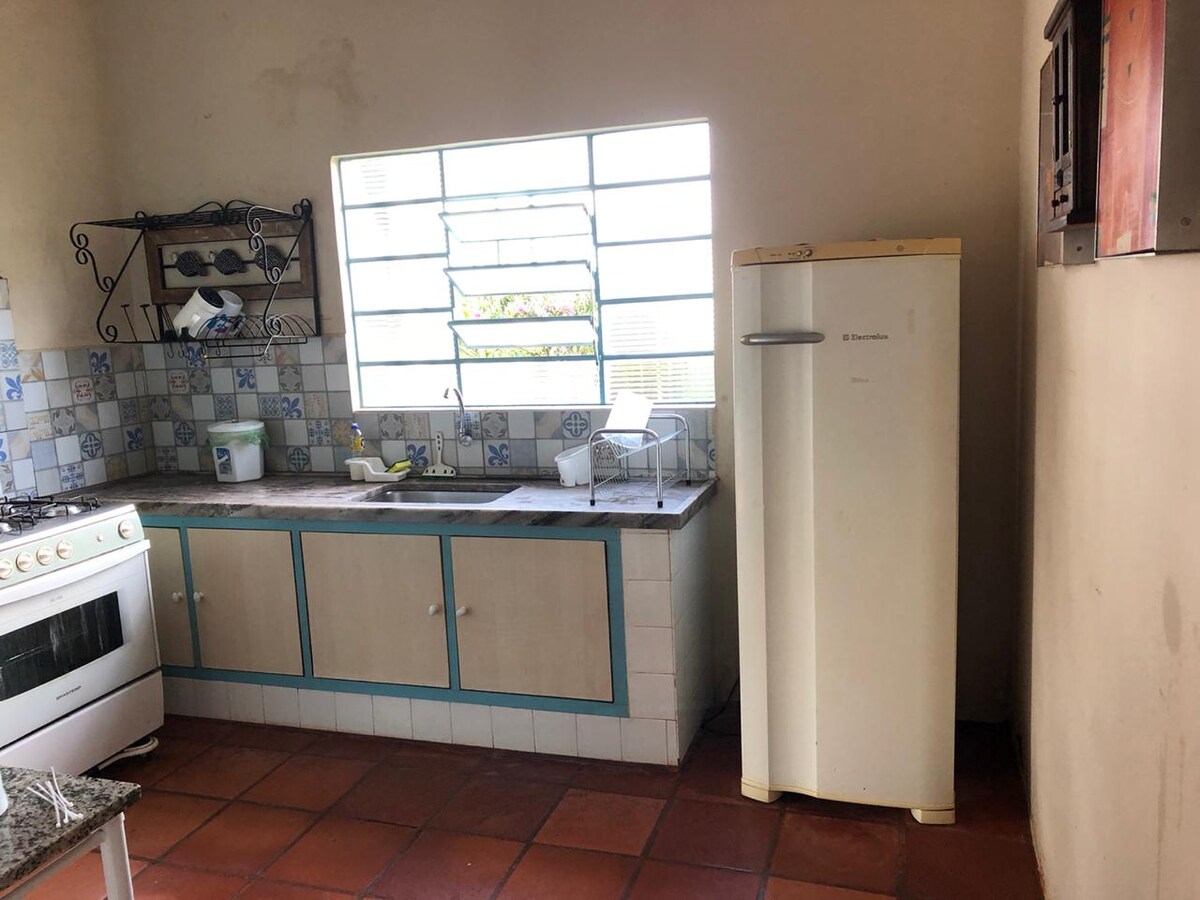 Una casa de campo construida en 1950 que aún conserva sus características originales. A cien metros del río Tomazão, la casa está rodeada por un hermoso jardín con muchas flores, árboles, pájaros y una piscina. Amplia y ventilada, tiene una vista privilegiada desde todos los ángulos. Dondequiera que esté el huésped, estará cerca de la naturaleza. Quiosco con hamacas, parrilla, estufa de leña, congeladores y cocina industrial. La decoración rústica está llena de encanto, comodidad y muchos detalles. ¡Un lugar hecho del cielo!