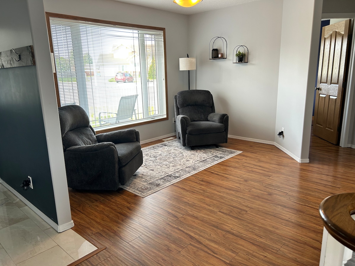 Serene, peaceful. Come relax after a day of skiing or the hockey tournament! Walk across the street to the arena! Our house is located very near to a library, pool, waterslide, fitness center, tennis courts, and even a splash park for your little ones. Whether you are hiking in the Rockies, exploring southern Alberta's many lakes and rivers, or just getting a taste of the wild west, this cozy house and peaceful atmosphere is the perfect place to kick back and relax after a long day of adventure.