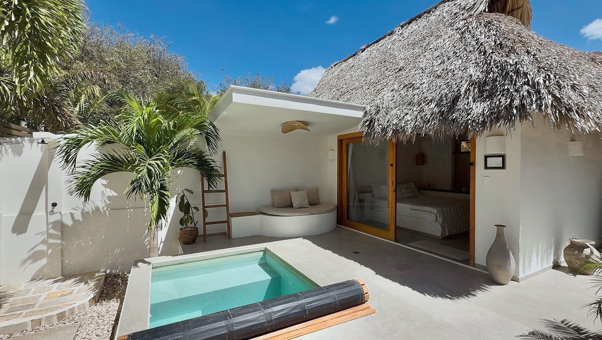 Tenemos 3 Bungalows en la propiedad, rodeada de palmeras y arena. Pasa los días disfrutando de la playa privada o desde el jacuzzi de tu terraza, hipnotizado por el horizonte azul. Mobiliario de lujo, calidad y diseño. Jacuzzi privado en tu terraza Carro de golf gratis con chofer. Entregamos personalmente la casa explicando todas sus utilidades. El desayuno de bienvenida está incluido en armarios y nevera para elabores a tu gusto. Wifi Starlink y mobil, BBQ, juegos de playa, chailones