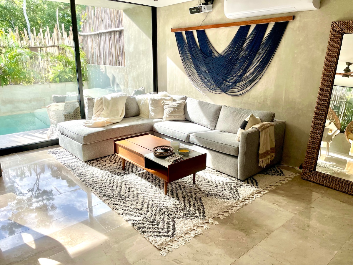 Welcome to beautiful Casa Agosto! This stunning two-story condo features a large open concept living-dinning room, 2 bedrooms, 2 full ensuite bathrooms, 1 half bathroom, a beautiful private garden, your own dipping pool, lounge chairs, hammock, outdoor sectional and a BBQ. With room for 4 people, the place is ideal for couples, families, friends and business travelers. Your reservation includes complimentary concierge service, and preferred access to some of the best beach clubs in Tulum.