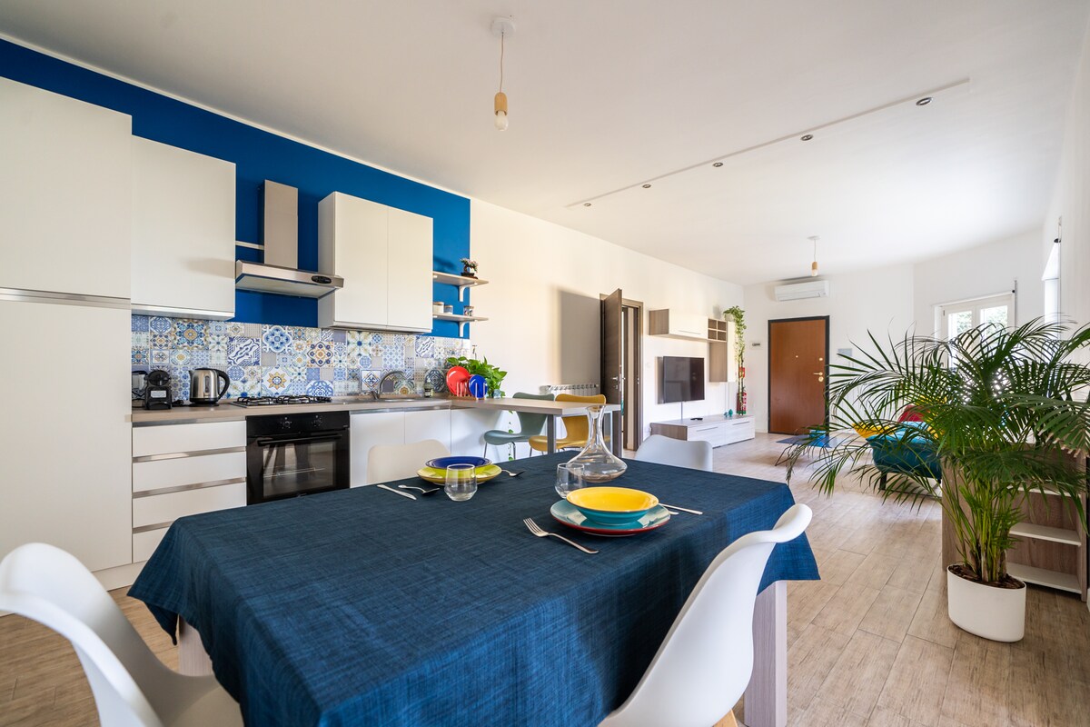 A 170 metros del mar, entre la almadraba y la Reserva Natural de Zingaro, se alternan varias calas, planta única y equipada con mosquiteras. El jardín, con ducha exterior, se extiende alrededor de toda la casa, con una cómoda barbacoa con fregadero, tumbonas, sofás y mesas al aire libre donde se puede almorzar, cenar o pasar agradables veladas. Abajo, en el mar, dos calas de uso exclusivo de la residencia, accesibles por pasajes de piedra, en el cercano Baglio, bar, estanco, pub, restaurantes, pizzerías, mercado, cajero automático.