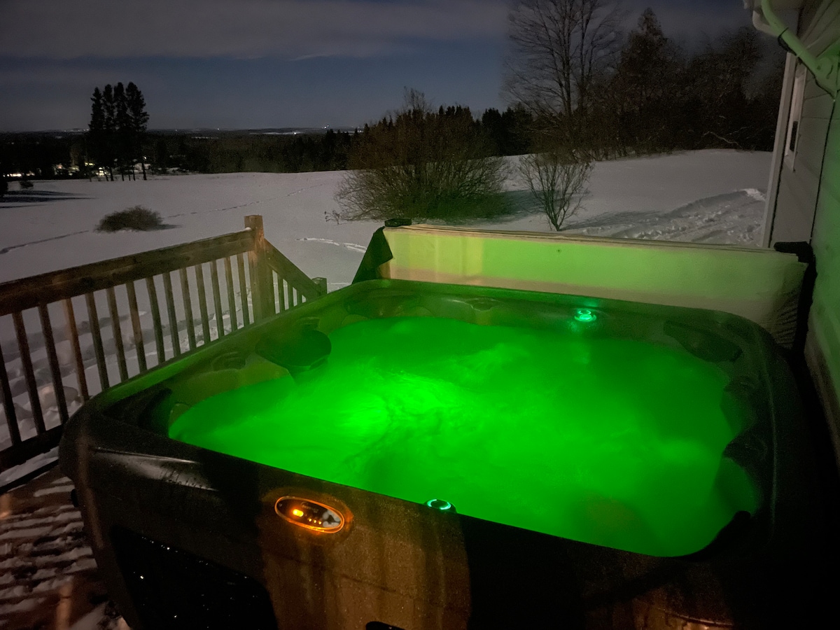 Stop in and relax at this quiet country home overlooking the rolling hills of the St. John River valley in Greenfield, New Brunswick. Enjoy a hot drink on a cold night beside the fireplace, stargaze from our clear water hot tub, play a game of dominos, or just take a deep breath of clean country air at The Green Canoe as you paddle through life! Bon Voyage! No smoking/vaping in house or on decks See guide for local attractions Wifi and a 60 inch bluetooth screen Please read notes on Hot Tub