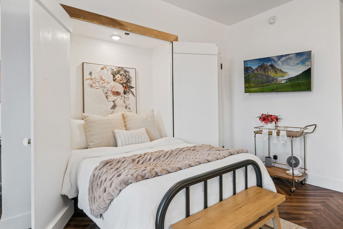 Bienvenido a The Daisy Suite, la joya histórica ubicada entre el mar y el distrito de las artes del centro de Long Beach. Este estudio bellamente renovado ofrece una planta abierta y vistas al puerto deportivo. Cada habitación ha sido cuidadosamente seleccionada para garantizar que tu estancia sea elegante, elevada y fiel al período de los años 20. El apartamento está a poca distancia a pie del Centro de Convenciones de Long Beach, Pine Avenue, The Pike y múltiples boutiques, restaurantes y bares.