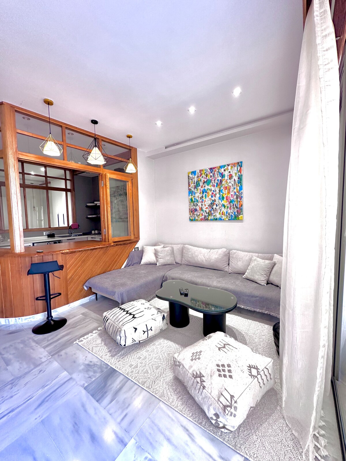 Apartamento en alquiler en el corazón de la residencia Marina Yasmine Hammamet. La residencia se encuentra a 150 metros de la playa y cuenta con piscina privada y aparcamiento bien vigilado. El apartamento consta de una amplia sala de estar, un dormitorio, un baño, una cocina americana (cocina americana) y un balcón con una vista magnífica. El apartamento es amplio, está bien decorado y muy bien equipado (aire acondicionado, wifi, una gran televisión con todos los canales...).