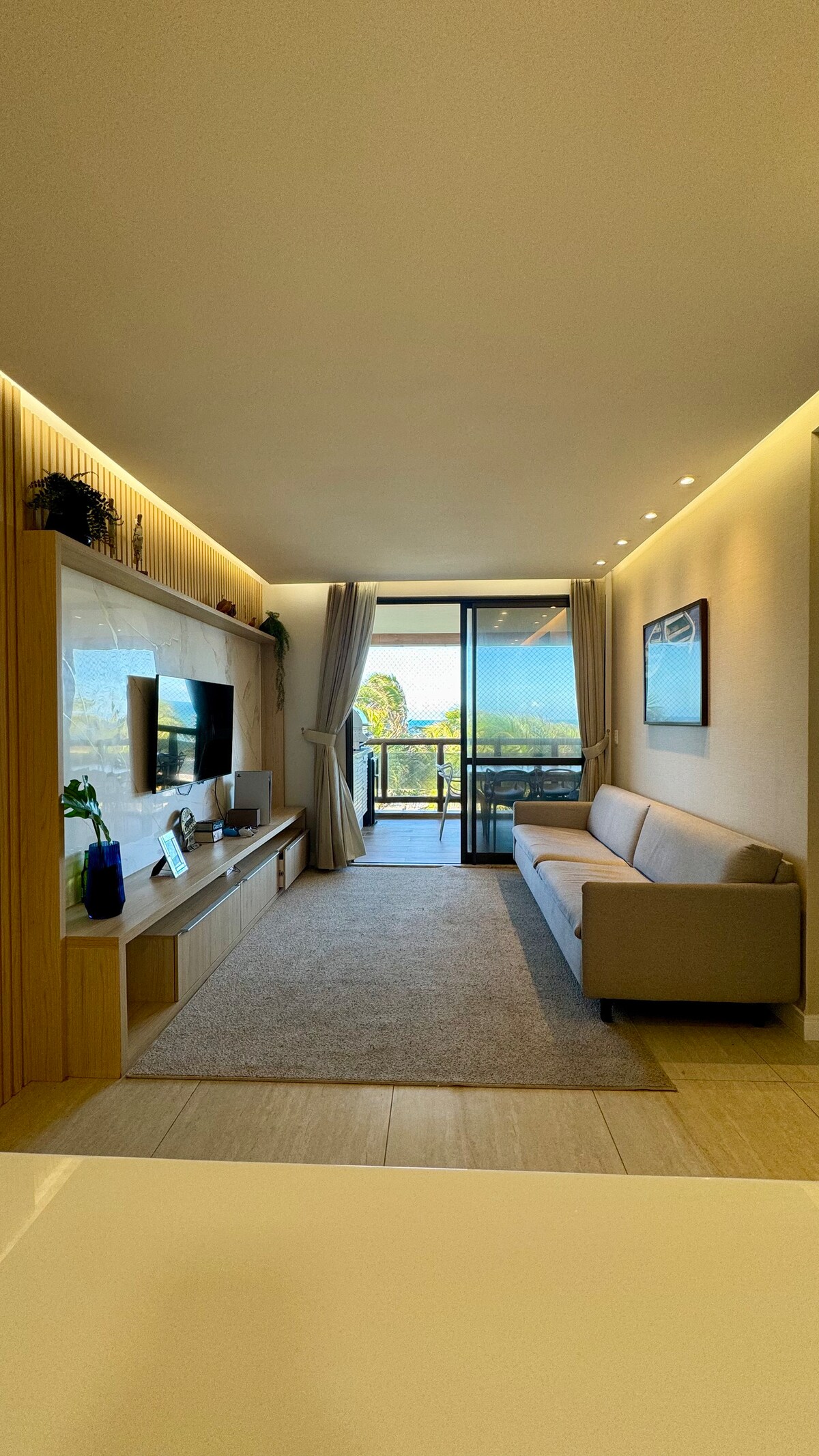 Lujoso Apartamento Frente al Mar, Nascente Maravilloso apartamento de 95m2 con vista completa al mar (apartamento frente al mar) y fue completamente diseñado y amueblado con atención al detalle para el máximo confort, ofreciendo la mejor experiencia posible. Cuenta con 2 suites completas y 1 Dormitorio-Sala (HomeCinema) con 2 sofás cama extragrandes equipados con SmartTV vista mar, balcón frente mar con mesa y sofá, el lujoso apartamento recibe cómodamente 6 huéspedes. ¡Perfecto para familias!