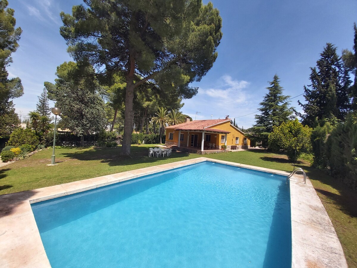 Chalét en la población de SAX ,bien ubicado, acceso rápido a la autovía Madrid alicante en 3 minutos Y a 25 minut de el aeropuerto de Alicante, a 20 minutos de alicante capital, a 8 minutos de la población de VILLENA donde se celebran en agosto los conocidos festivales, leyendas del rock .y rabo lagartija. OJO.MUY IMPORTANTE.A la solicitud de reserva hay que aportar correo electronico de los huespedes y a la llegada APORTAR DNI DE LOS 10 HUESPEDES.