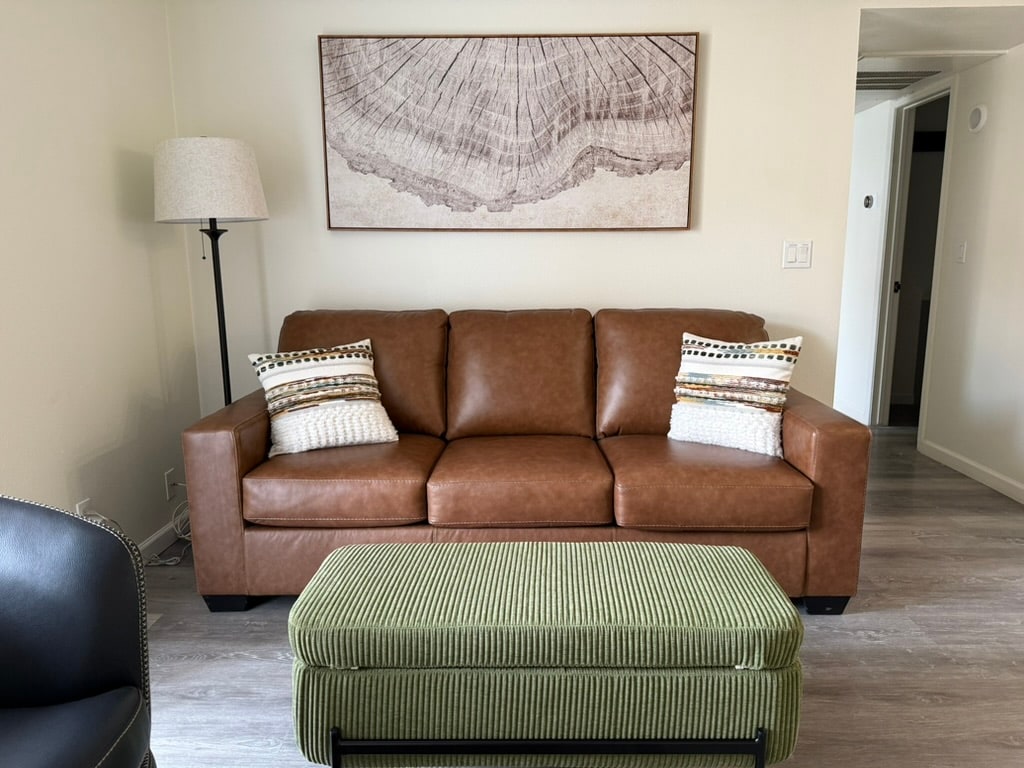 El espacio: Bienvenido a Palm Paradise, tu relajante refugio en el corazón del casco antiguo de Scottsdale. Renovado en octubre de 2024, este condominio combina un elegante diseño desértico-boho con todas las comodidades del hogar, creando un espacio que es hermoso y funcional. Relájate en el acogedor sofá de pana verde, perfecto para dormir la siesta, o sal al balcón privado para presenciar las espectaculares vistas del atardecer sobre Camelback Mountain. Entra en el tranquilo dormitorio con una cama tamaño king y sábanas de alta calidad.