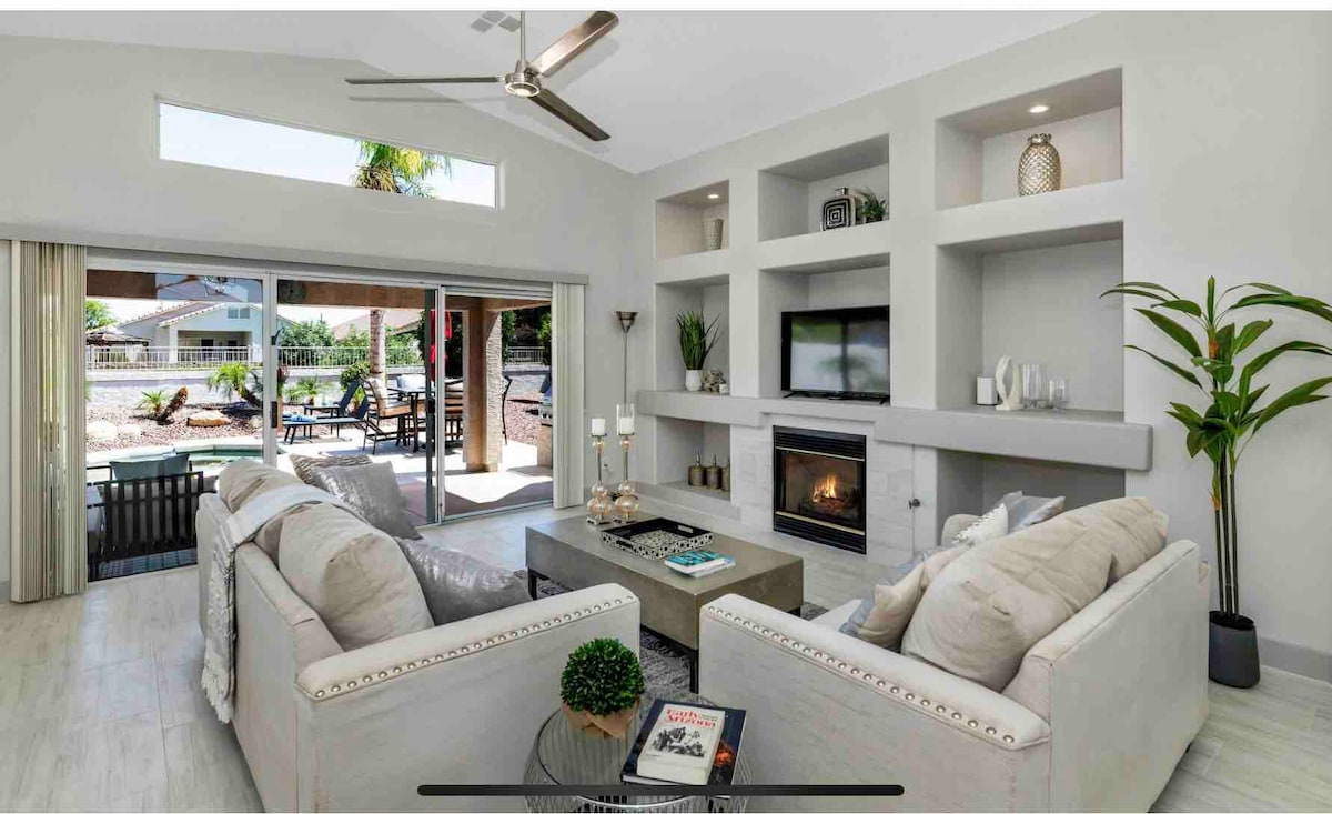 ¡Escápate a nuestra impresionante casa en el corazón de Chandler! Este refugio de 3 dormitorios y 3 baños es ideal para familias, parejas o amigos que buscan explorar la zona de Phoenix. La cocina totalmente equipada satisface las necesidades culinarias, mientras que el patio trasero presenta un verdadero oasis. Sumérgete en la piscina privada, relájate en el jacuzzi o en la sauna y reúnete junto a la acogedora chimenea. El patio cubierto es perfecto para comer al aire libre, completo con parrilla para barbacoa. Experimenta la combinación perfecta de comodidad y lujo. ¡Reserva ahora para una estancia inolvidable!