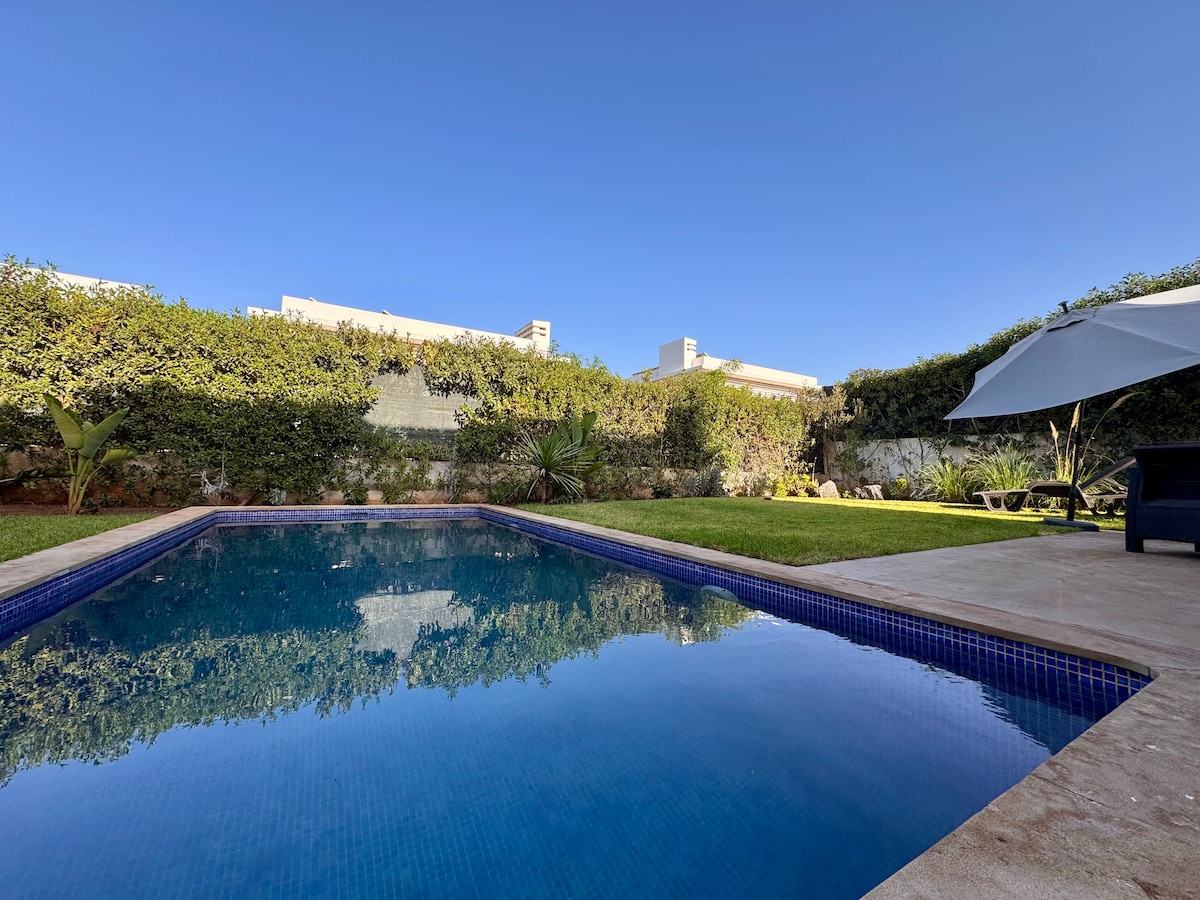 Welcome to Villa Casadiaa, a modern 4-bedroom retreat with private pool, gym, and office, set in a secure luxury residence featuring tennis, padel, and football courts. Designed for comfort and style, it offers 3.5 bathrooms, a bright living area, outdoor lounge, and premium fitness equipment. Perfect for families or groups seeking space, serenity, and resort-style leisure. Ideal for Casablanca commute, right by Ville verte.