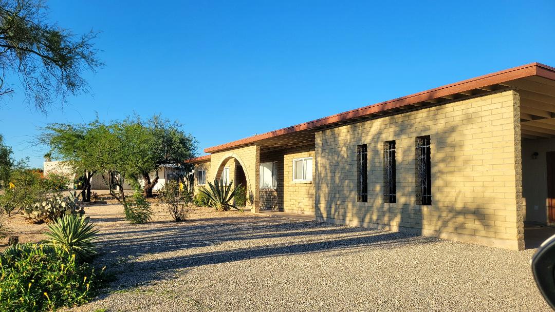 Bienvenido a un tranquilo follaje del desierto lejos de la ciudad. La casita cerrada de 2 acres, ubicada en una meseta, compartida con otro ocupante en la propiedad, ofrece vistas espectaculares de las montañas de Catalina. La casita de 1300 pies cuadrados, 2 dormitorios y 2 baños, con azulejos tradicionales de Saltillo, presenta un tema moderno del suroeste en armonía con la zona montañosa del desierto. Disfruta de un entorno tranquilo de la naturaleza con árboles de mezquite maduros, conejitos de cola blanca, búhos, codornices, palomas, halcones y noches estrelladas.