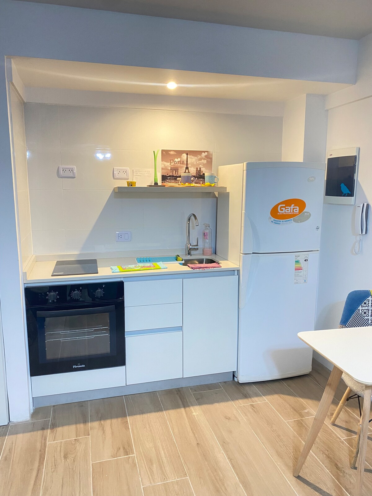 Luminoso monoambiente donde el cálido atardecer escapa por la ventana. Descansa en este tranquilo y hermoso departamento. Sábanas y toallas calidad hotelera, shampoo, acondicionador y jabon liquido para el cuerpo. Equipado con electrodomésticos, aire acondicionado, TV con cable y wifi, secador de pelo, luz de emergencia. A una cuadra del área de servicios con restaurantes, cafeterías, panadería p/ celiacos y veganos y transporte público.