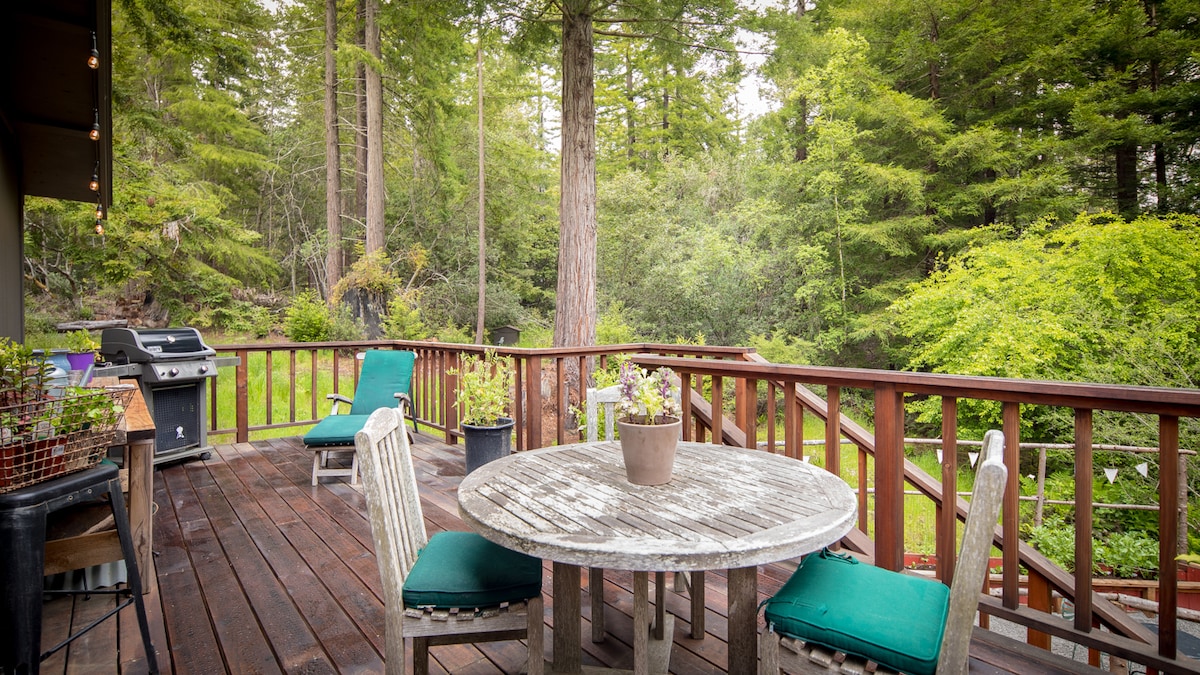 Casa rural en el bosque, 33 acres tranquilos, cerca de la playa/Mendocino