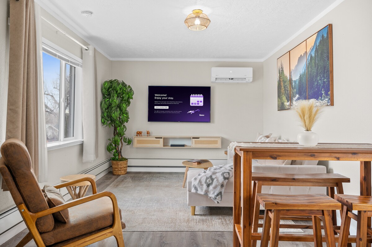 A one-of-a-kind stay where you’ll have two beautifully designed homes all to yourself. Each side is a 2/1 with a kitchen, living room & laundry, blending privacy with convenience. Step outside to the incredible outdoor space: a massive yard with a fire pit, grill, seating, and plenty of room to unwind under Wyoming’s big sky. Can sleep 8 adults plus kids, there is pack & play in each unit + a small futon in one and a pull out couch in the other, and 4 queen beds.